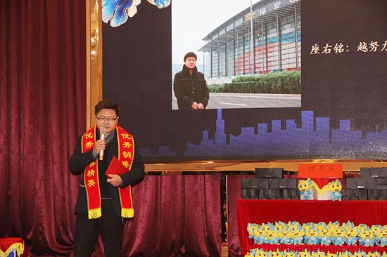 营销总监贺金龙先生领取“优秀销售精英“奖项时作了激昂慷慨的发言,向与会同事分享了自己的发展历程,以及未来的发展方向和展望,鼓励大家“越努力,越幸运”再接再厉,勇创新高。公司也一定认真评诂大家工作表现,激励不断,提供更好的发展平台和机遇。