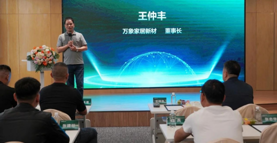 万象家居新材副总经理王学锋先生对万象博耐克联盟政策进行详细宣讲,围绕联盟合作核心内容展开,清晰传递了助力合作伙伴开拓高端板材市场、共享绿色产业红利的政策导向。