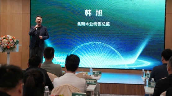 北新木业销售总监韩旭先生在峰会上发表讲话,高度肯定此次联名推新的重要意义。并指出,这次合作不仅是北新集团布局高端绿色板材市场的关键实践,更通过央企私企协同为行业树立了“资源共享、优势互补”的合作标杆,对推动建材产业升级具有重要示范作用。