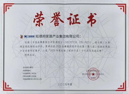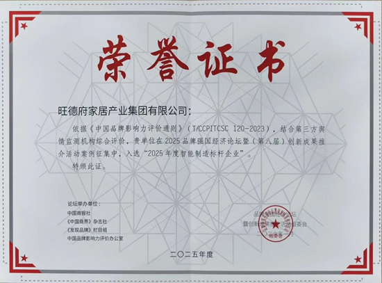 荣誉加冕是认可,更是前行的新起点。旺德府家居集团携旗下万象板材、万象天冠高端实木全屋定制,始终锚定技术创新核心,深耕建材行业技术研发与产业升级,以智能制造筑牢发展根基,以硬核技术突破行业壁垒,将ENF级环保板材、高端实木全屋定制等核心优势转化为品牌竞争力。此次斩获多项品牌荣誉,是集团技术实力与品牌价值的双重印证,更是助力品牌强国建设的坚实步履。