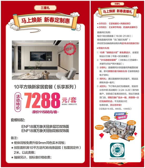 38女神节专属直播场,直播间红包雨轮番狂撒,福利不间断,更有5大权益大礼包诚意派送,涵盖免费设计、预约礼、成交礼等多重惊喜,让你边看边抢、边学边省,轻松解锁家装焕新与女神专属福利,惊喜不停歇!