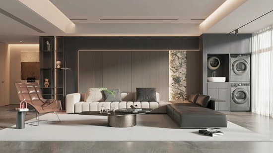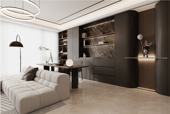 ·软装:搭配米白、焦糖、橄榄绿、脏粉,少量金属(黄铜 / 哑金)点缀提升精致度;