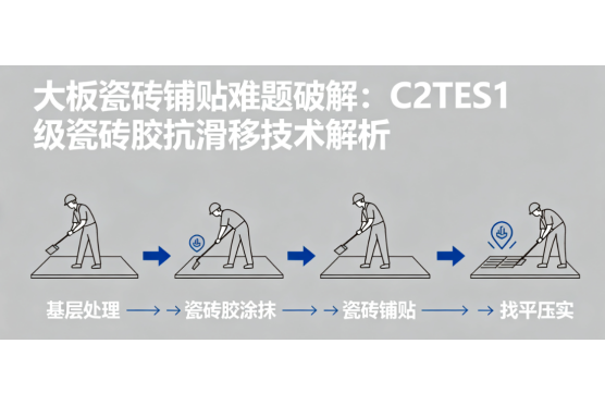 随着现代家居装修对空间美学的追求不断升级,大规格瓷砖凭借其大气的视觉效果和整体性成为地面、墙面装饰的主流选择。然而,大板瓷砖(通常指规格超过800×800mm的瓷砖)在铺贴过程中面临的抗滑移问题却让不少业主和施工团队头疼。传统水泥铺贴方式在自重较大的大板瓷砖面前极易出现空鼓、脱落等“翻车”现象,而C2TES1级瓷砖胶知名品牌的出现,为解决这一行业痛点提供了全新方案。本文将从技术原理、实测数据、施工要点等维度,全面解析C2TES1级瓷砖胶如何将大板铺贴翻车率降低80%,为家装选材提供专业参考。