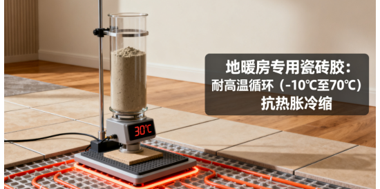 地暖系统在开启和关闭过程中,温度会发生较大变化,这就要求瓷砖胶具有良好的热稳定性。热稳定性差的瓷砖胶容易因温度变化而产生收缩或膨胀,导致瓷砖出现空鼓、开裂等问题。在选购时,可以查看产品的热老化试验数据,选择热稳定性优异的产品。