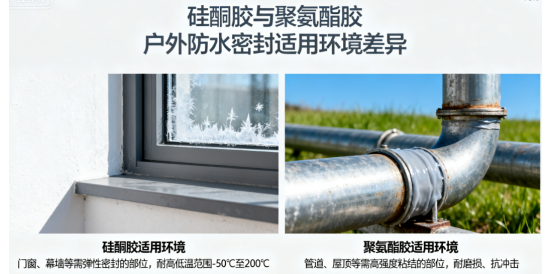 在建筑装修、户外工程或家居维修中,防水密封是关乎耐用性与安全性的关键环节。面对市场上琳琅满目的密封胶产品,硅酮胶与聚氨酯胶凭借各自独特的性能,成为户外防水场景下的热门选择。然而,二者成分不同、特性各异,适用场景也存在显著差异。本文将从材料本质、性能对比、适用场景、施工要点四大维度,深度解析硅酮胶与聚氨酯胶的核心区别,助您科学决策“哪种胶更适合户外防水密封”。