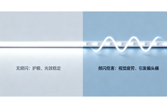 在现代家居装修和商业照明场景中,LED灯带凭借其节能环保、色彩丰富等优势被广泛应用。然而,不少用户在使用过程中都会遇到LED灯带频闪的问题,不仅影响照明体验,长期处于频闪环境下还可能对视力造成损害。想要彻底解决这一问题,需要从电源驱动、电路设计等核心环节进行系统性排查。本文将围绕五个关键排查点,为你深度解析LED灯带频闪的成因及解决方案。