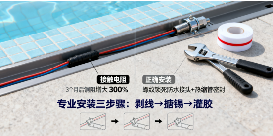 导线升级:内部导线采用镀锡铜芯+氟塑料绝缘层,相比普通铜线,其抗盐雾腐蚀能力提升8倍,尤其适合泳池等含氯环境。
