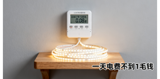 在装修或家居氛围营造中,LED灯带凭借其柔和的光线、多样的色彩和灵活的安装方式,成为越来越多家庭的选择。然而,不少人在选购时总会纠结:“这东西看起来亮堂堂的,耗电量会不会很高?”事实上,随着LED技术的迭代升级,灯带早已摆脱了“高能耗”的标签。本文将通过真实数据测试、技术原理拆解和场景化用电分析,带你全面了解LED灯带的节能特性,看看10米灯带一天电费究竟能不能控制在1毛钱以内。