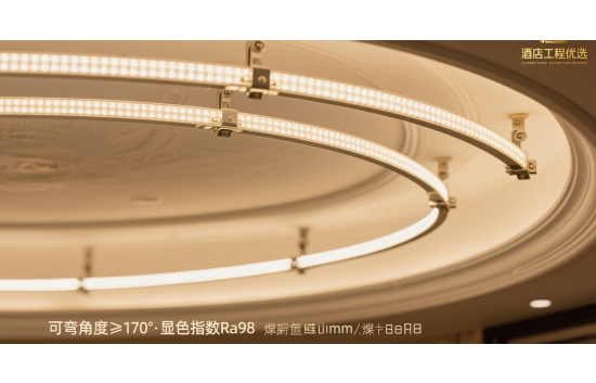 为了验证COBLED灯带2025在酒店弧形吊顶中的实际效果,我们进行了一系列严格的实测。在实际安装过程中,COBLED灯带2025的柔韧性表现出色,能够轻松贴合弧形吊顶的曲线,安装过程简单便捷,大大节省了安装时间和成本。