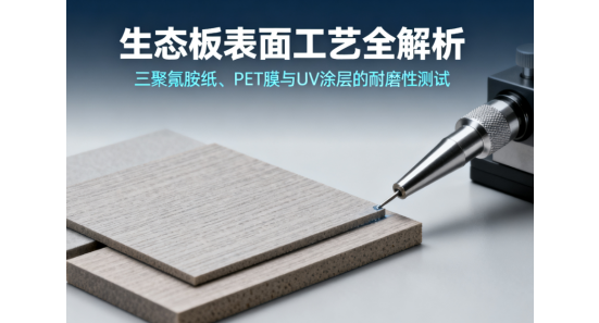 在定制家具与家装市场中,生态板凭借环保性与性价比成为主流板材之一,而表面工艺直接决定其耐用性与美观度。本文通过科学实验数据,深度解析三聚氰胺浸渍胶膜纸、PET装饰膜及UV固化涂层三种主流表面处理工艺的耐磨性能差异,为消费者与行业从业者提供专业参考。