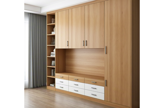 采用生态板定制柜体时,建议采用"三明治"结构设计:表层选用1.2mm厚耐磨装饰纸,芯层采用杨木与松木混合芯材,背板使用5mm厚同材质薄板。这种结构使柜体抗弯强度提升40%,同时通过板材间的物理咬合减少胶粘剂使用量。