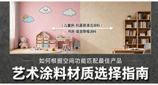 在室内设计领域,艺术涂料作为提升空间质感的重要载体,其材质选择直接影响空间功能的实现与居住体验的优化。不同功能区域对涂料的性能需求存在显著差异,盲目追求装饰效果而忽视材质适配性,往往导致使用过程中出现褪色、开裂、霉变等问题。本文将从空间功能特性出发,系统解析艺术涂料的材质分类标准、性能参数与匹配逻辑,为消费者提供科学的选购参考框架。