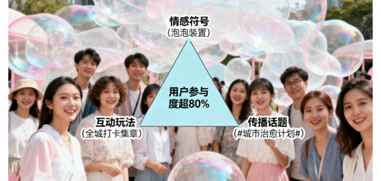 互动仪式感打造:设计“泡泡心愿投递”“陌生人拥抱盲盒”等低门槛参与环节,让用户从“旁观者”变为“共创者”,活动期间UGC内容占比达62%。